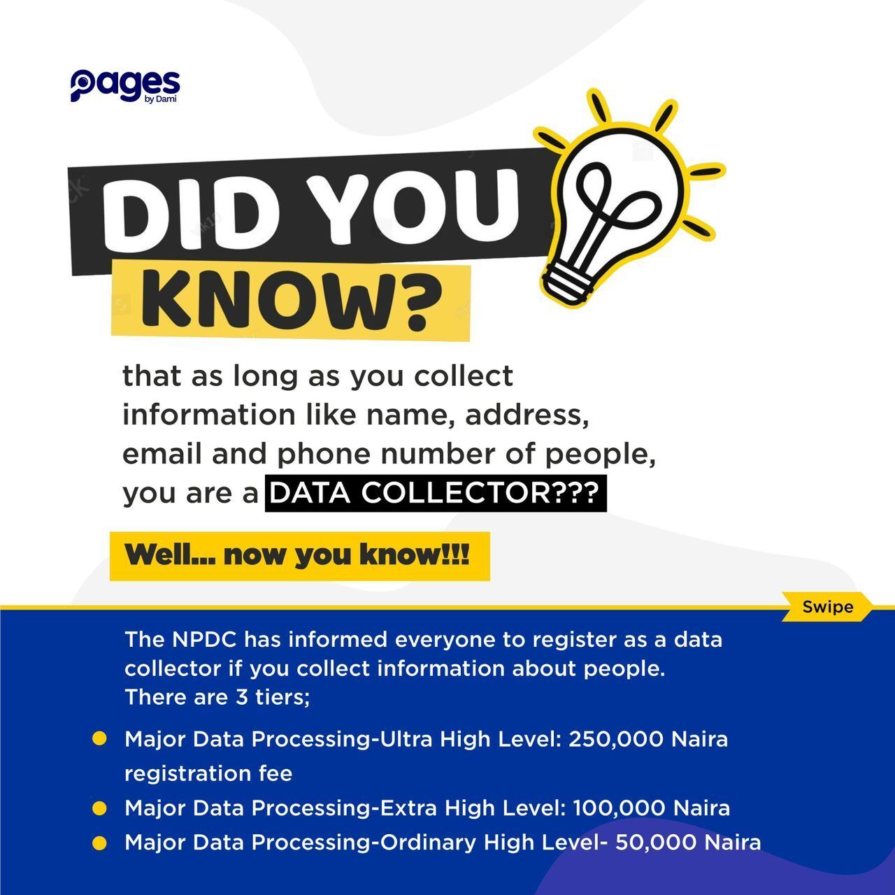 But why? well, The NDPC state that as long as you collect data from people (your customers) like name, age, email, address, phone number etc you are a data collector and processor. So they have asked that you register with them so they can monitor what you use these information for and yes it is compulsory. The penalties is either a Ten million Naira fine, or 2% of previous year’s revenue or 1 year Imprisonment or all sef. So to avoid this hurry now and register.